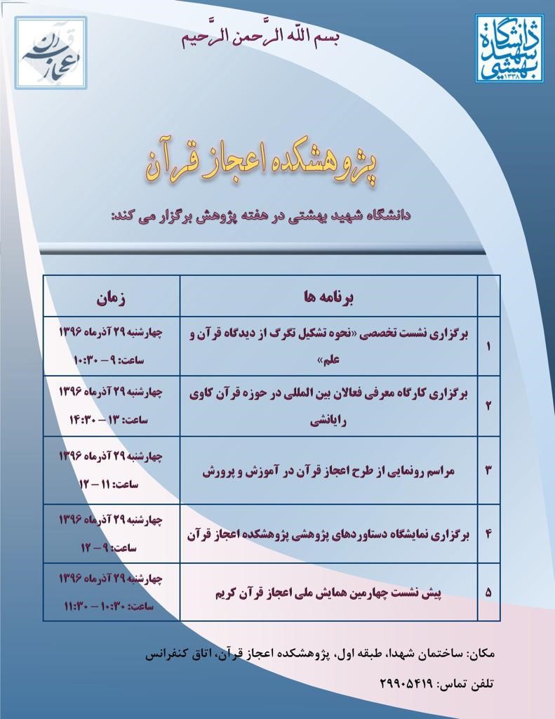 تهران- اوین – بلوار دانشجو  – دانشگاه شهیدبهشتی – ساختمان پژوهشکده اعجاز قرآن – انجمن اعجاز قرآن